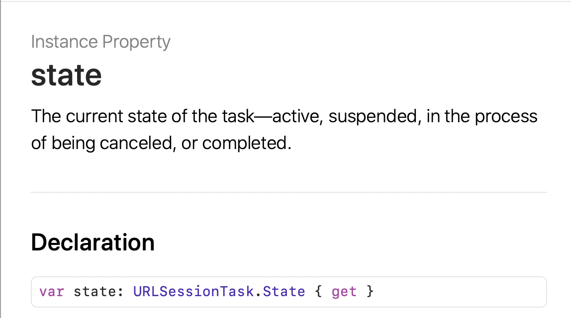 그리고 이번에 확인은 UrlSessionTask.state로 상태를 확인하자, progress는 진척 상황 확인하긴 좋은데, 그정도로 아직 필요 없음 디버깅에.