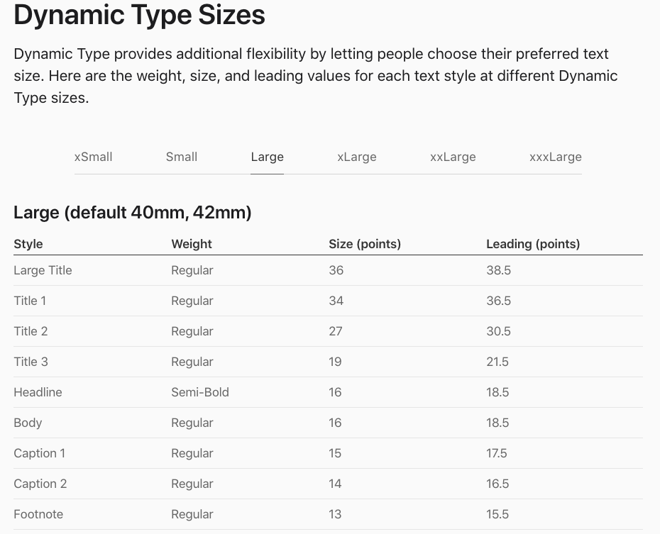 음 개발하는데 왜 swiftUI watchOS에 폰트를 입력하는거 보다 2정도 작게 나오더라, 그래서 dynamic으로 안해서 그런가 했는데, 사실 별 상관 없는거 같긴한데, 위에 표보고 하니까 표에 적힌 사이즈대로 나오긴 하더라...