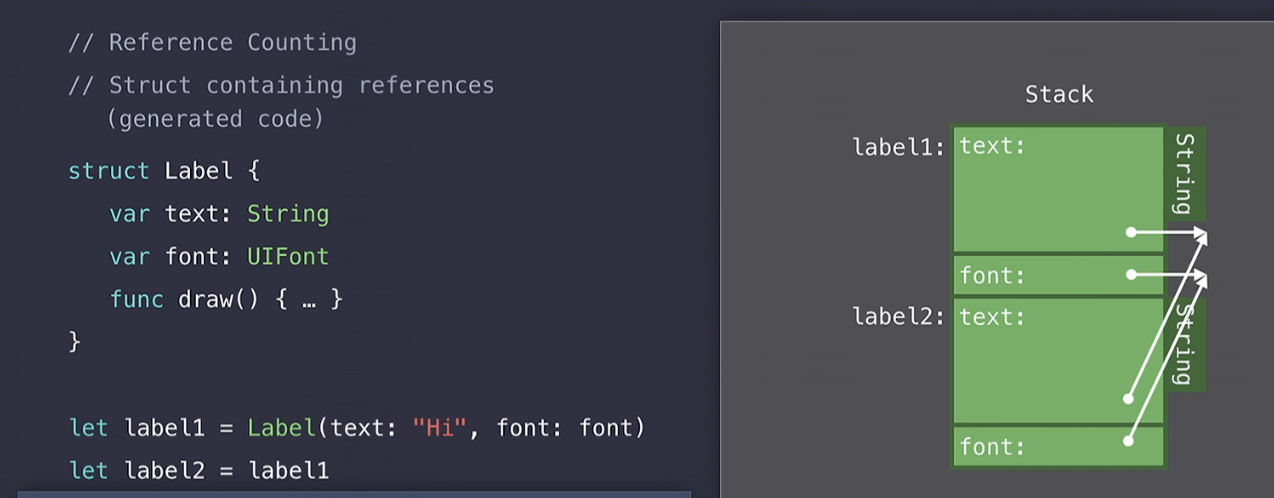 reference counting은 자주 일어나지 않는게 좋습니다. 즉 아무리 struct라도 reference를 소유하는 경우는 꽤나 비효율적으로 동작한다는 얘기입니다.